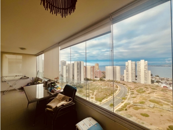 UFVENDO AMPLIO DEPARTAMENTO UBICADO EN COSTAS DE MONTEMAR. Amplio departamento estilo mariposa. emplazado en un piso 13 con una vista despejada . Cuenta con orientación nor/poniente. El inmueble cuenta con : Cocina amoblada y equipada con amplia isla Sector logia con conexión de lavadora Living con vista al mar con salida a terraza cerrada 2 espaciosas habitaciones con closet y baño en suite. 1 Terraza amplia cerrada con cristales VISTA LIBRE 1 Estacionamiento en superficie 1 Bodega SUPERFICIE TOTAL 90,26 M2 SUPERFICIE ÚTIL 77,26 M2 SUPERFICIE TERRAZA 13 M2 VALOR INMUEBLE UF 6000 GASTO COMÚN $ 160.000 CONTRIBUCIONES $ 116.000 por cada cuota COMUNIDAD Conserjería las 24 horas 2 Hall de espera Piscinas superficie y temperada Gimnasio Sala de eventos Quincho Jardines exteriores 2 Ascensores Portón Eléctrico Cámaras de seguridad 1 Sala de reuniones